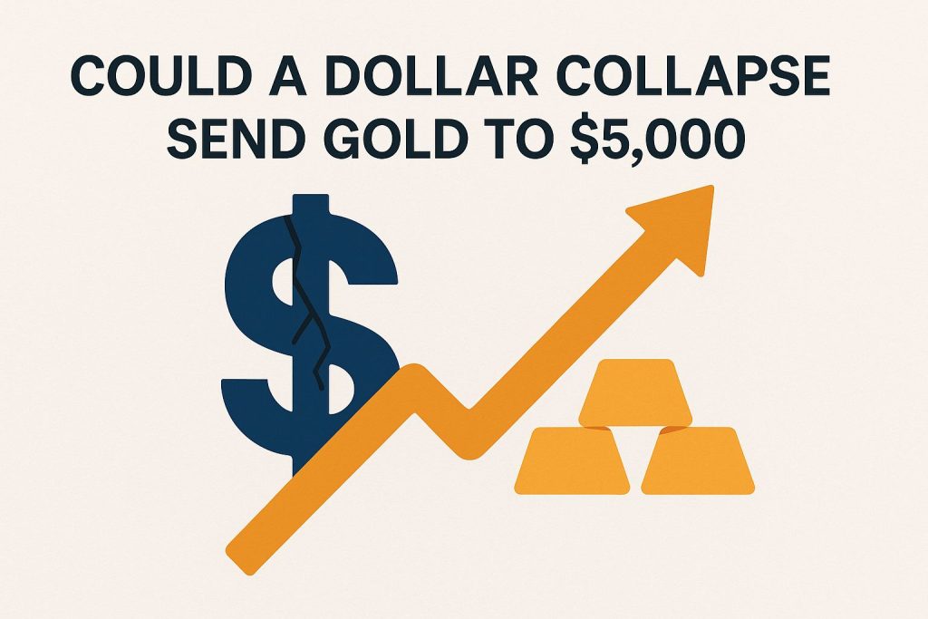 A collapse like this could shake up the global economy and markets. Gold prices might skyrocket to $5,000 as people rush to safe havens like precious metals.